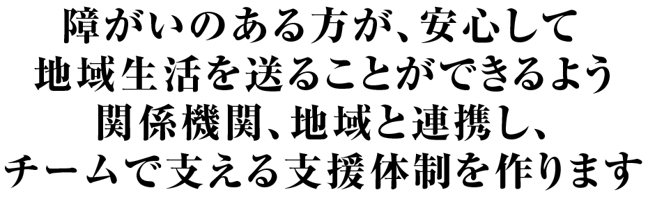 利用者さんが安心して自身の思いや目標を語るためには、まず相談員との間に揺るぎない信頼関係が必要です。私たちはその信頼を基盤に、利用者さんが心を開き、本音を伝えられる環境を整えていきたいと考えています。そして、希望する地域生活の実現に向け、福祉サービスだけに依存するのではなく、医療や教育、就労など他分野の機関とも積極的に連携し、社会との繋がりを大切にしながらチームで支える体制を構築します。さらに、困難なケースにおいては、相談員3人体制の強みを活かし、それぞれの経験や専門性を持ち寄り、幅広い視点から柔軟な支援策を検討します。地域に十分な社会資源がない場合には、自立支援協議会等に意見を上げ、資源の開発や仕組みづくりに取り組むなど、ソーシャルワークの視点を常に意識しながら実践していきます。