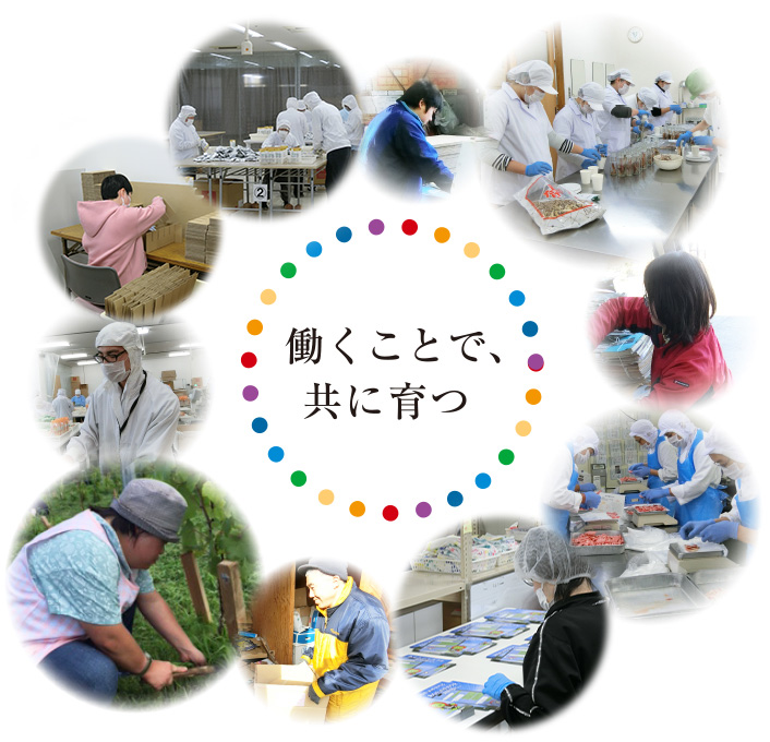 - 利用者様の安心できる生活のために、法人内・家族・地域が連携し支援の輪を作ります。あわせて、仕事を提供してくださる企業様との連携も図り、障がい者支援のためのより良い地域を作る努力をします