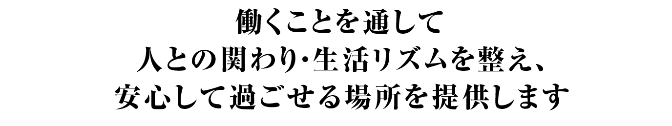 | 虐待防止 | 一人ひとりの人格を尊重し、心身の状態又は生活環境等の事情を考慮して作業に取り組んで頂きます |